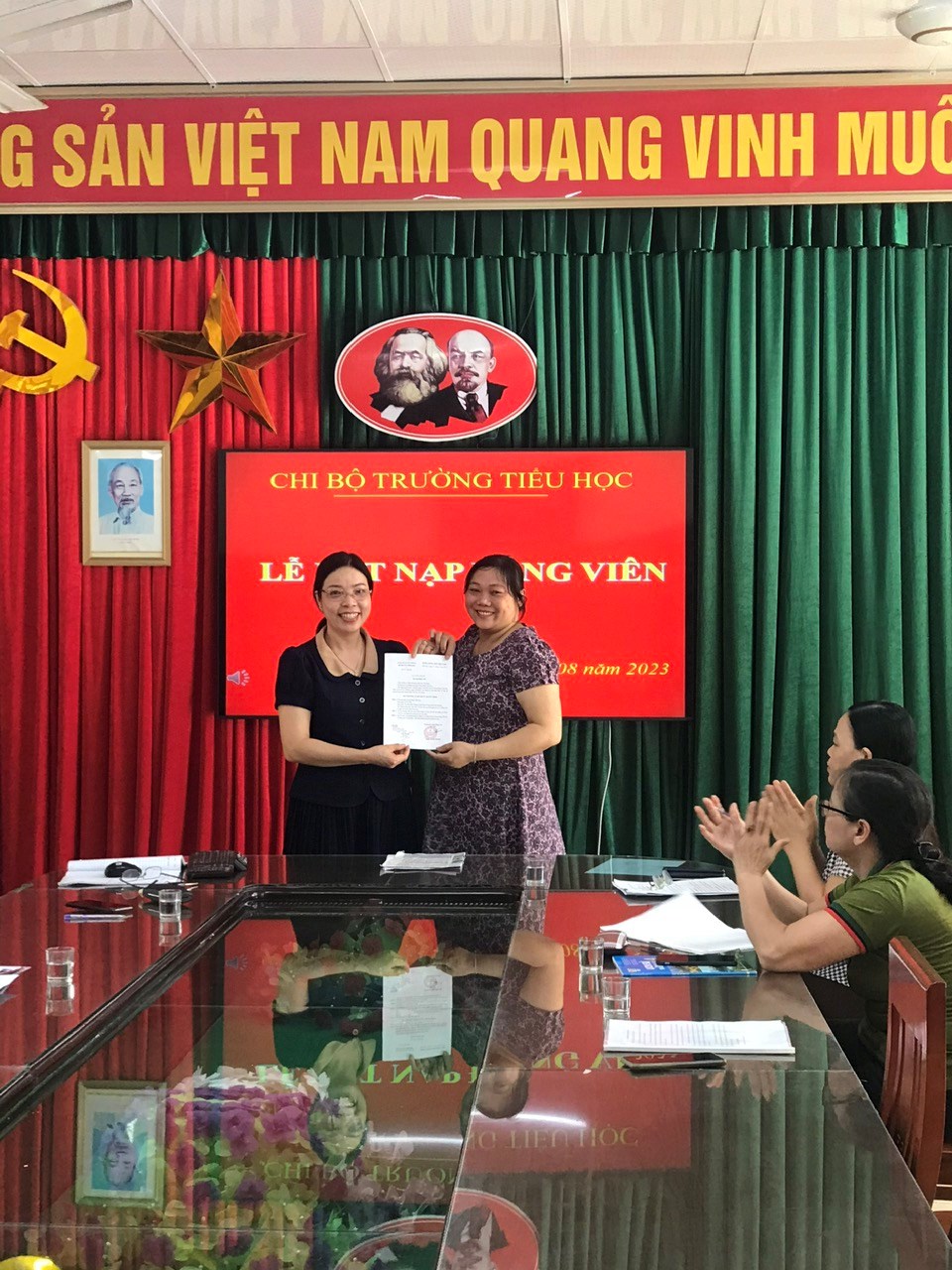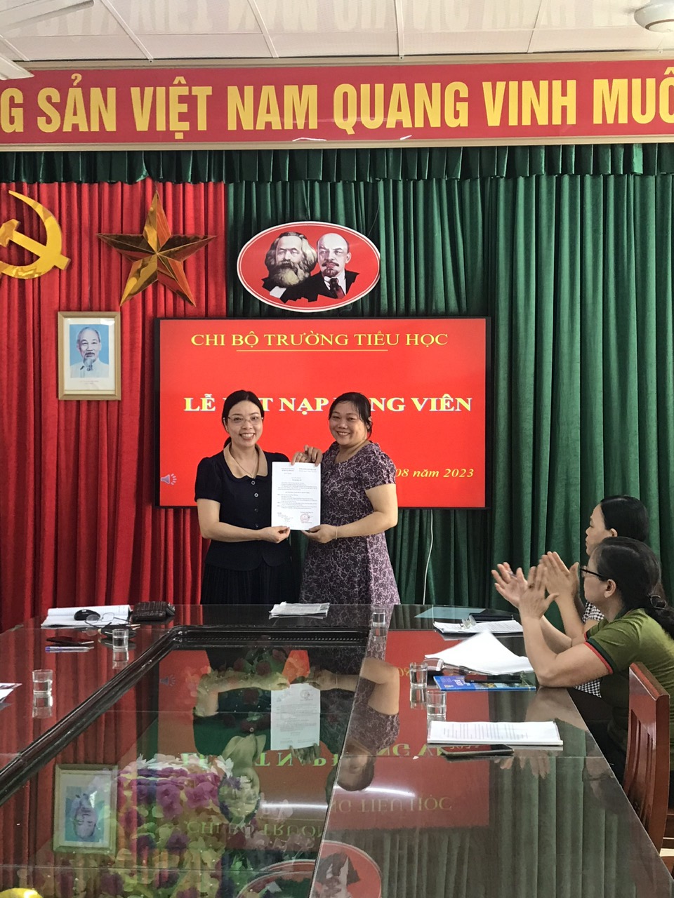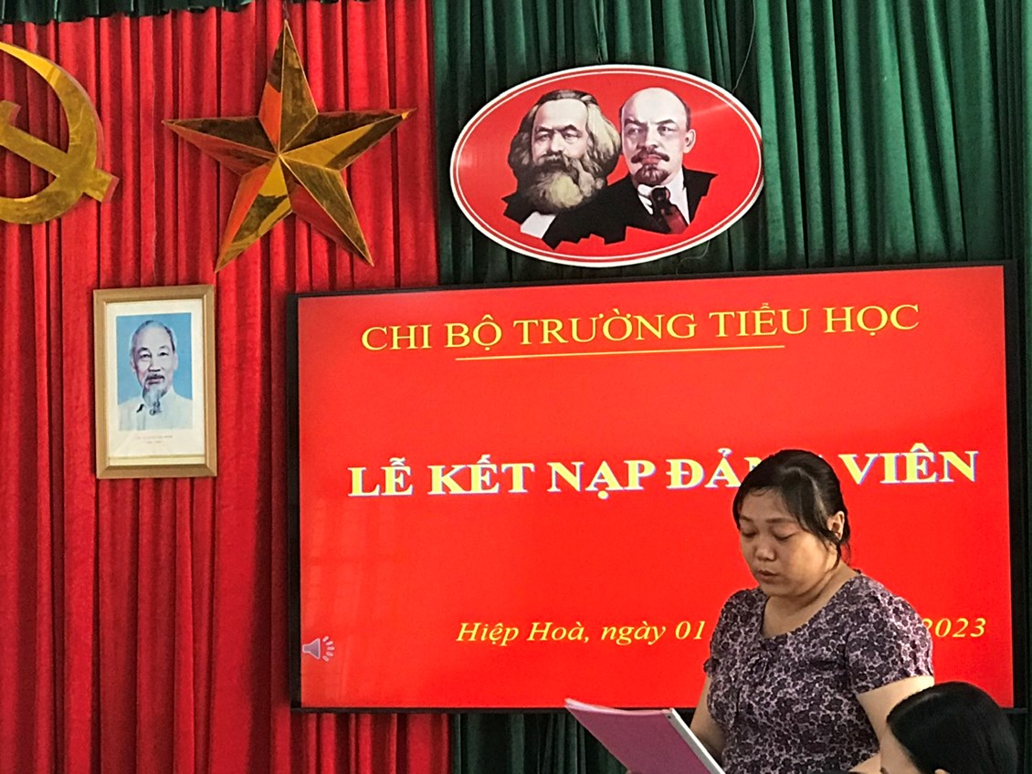 Lễ kết nạp diễn ra theo đúng trình tự, thủ tục điều lệ Đảng dưới sự chủ trì của đồng chí Nguyễn Thị Kim Anh- Bí thư Chi bộ, Hiệu trưởng nhà trường cùng tập thể Ban Chi ủy và đông đủ các đảng viên trong Chi bộ.