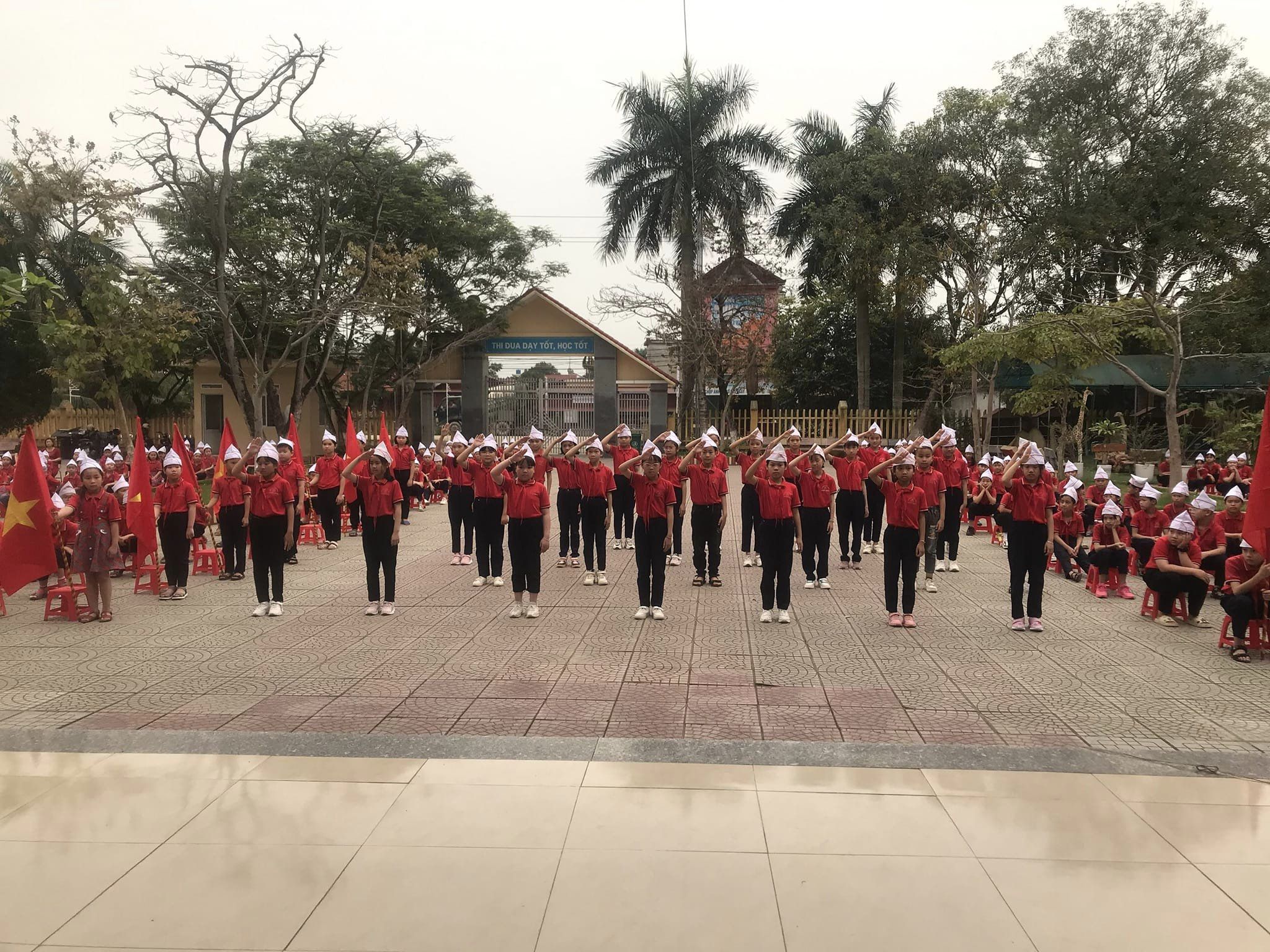 Tại Lễ chào cờ Liên đội đã nâng cao chất lượng sinh hoạt dưới cờ với chủ điểm: Hoà bình và Hữu nghị; … gắn với tuyên truyền, hoạt động biểu dương tấm gương người tốt, việc tốt, đội viên gương mẫu, giáo dục, định hướng cho thiếu nhi về giá trị đạo đức, lối sống, tình yêu quê hương, đất nước, bảo vệ chủ quyền biển đảo, biên giới.