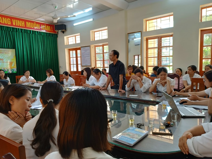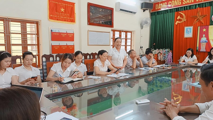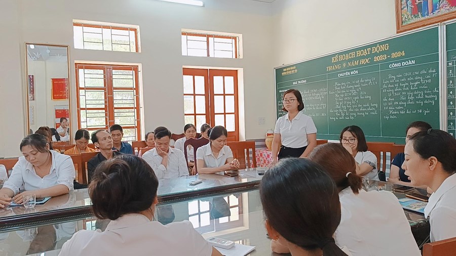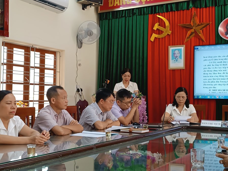 Đồng thời hội nghị cũng thông qua các quy chế, nội quy của nhà trường. Các đồng chí cán bộ, giáo viên, công nhân viên trong nhà trường sôi nổi tham gia thảo luận, đóng góp ý kiến, đưa ra nhiều biện pháp về các nội dung tư tưởng chính trị, giáo dục đạo đức trong nhà trường, việc nâng cao chuyên môn nghiệp vụ, nâng cao khả năng sử dụng, ứng dụng CNTT trong dạy học, công tác nâng cao chất lượng Giáo dục ngoài giờ lên lớp cũng như nâng cao kết quả các hội thi, giao lưu của học sinh. Các tham luận đều mang đến hiệu ứng tích cực trong hội nghị, mang lại niềm tin, sự phấn khởi trong mỗi CĐV tham dự hội nghị. Thay mặt đoàn chủ tịch, đồng chí Nguyễn Thị Kim Anh – Bí thư chi bộ – Hiệu trưởng nhà trường biểu dương thành tích xuất sắc của tập thể nhà trường đã đạt được trong năm học qua; đồng thời tiếp thu, giải đáp ý kiến và tiếp tục hoàn thiện các giải pháp nhằm nâng cao chất lượng giáo dục toàn diện năm học 2023 – 2024.