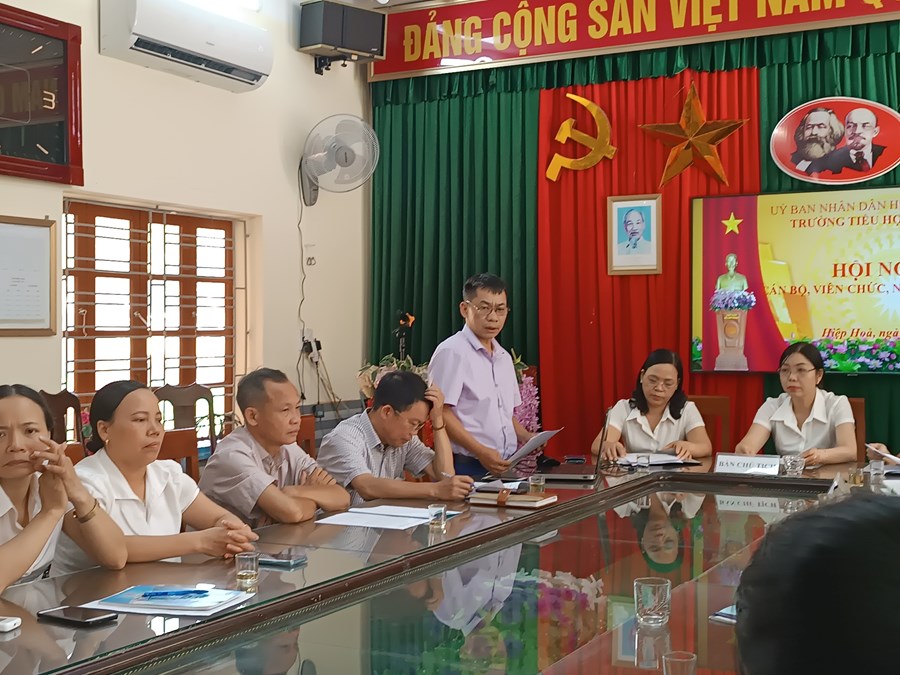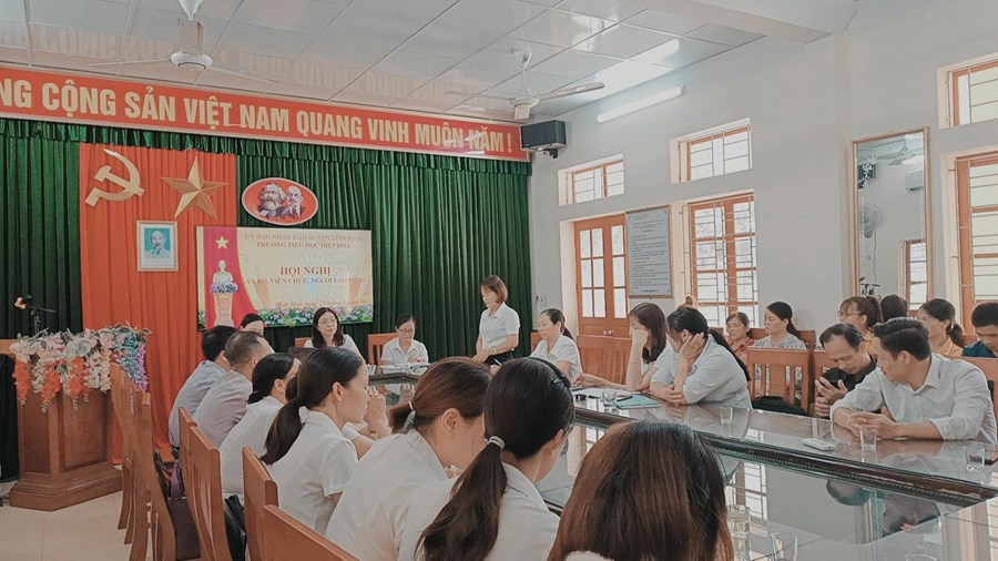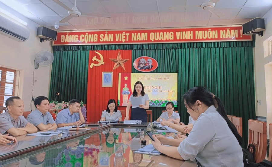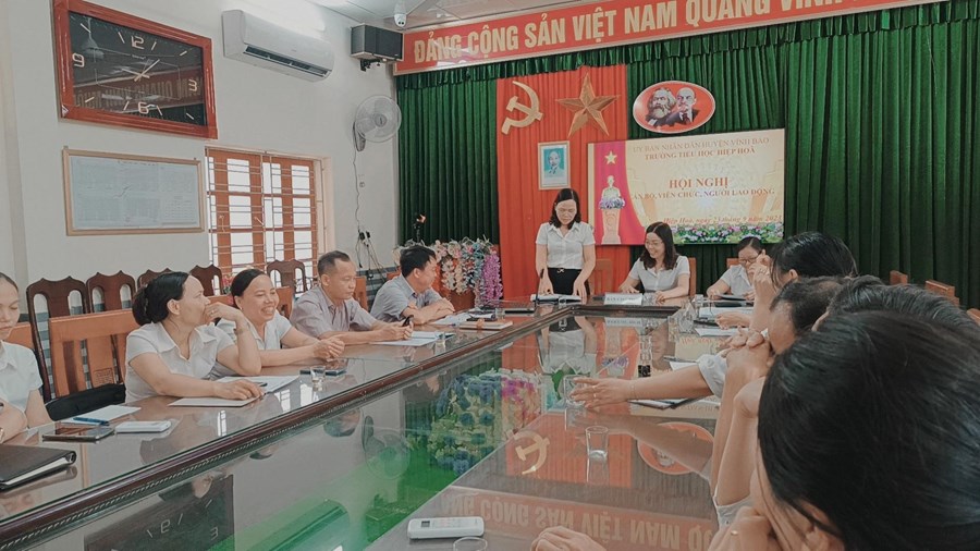 Thực hiện hướng dẫn của Liên đoàn Lao động huyện Vĩnh Bảo về việc hướng dẫn tổ chức Hội nghị Công chức – Viên chức, Người lao động, sáng ngày 23/9/2023, Trường Tiểu học Hiệp Hòa đã long trọng tổ chức Hội nghị Cán bộ, công chức, viên chức và người lao động năm học 2023 - 2024.