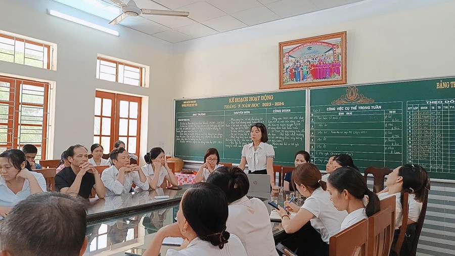 Hội nghị diễn ra với tinh thần dân chủ, cởi mở, thẳng thắn, công khai, thể hiện ý thức trách nhiệm của mỗi Cán bộ, viên chức, người lao động. Tại Hội nghị, đồng chí Nguyễn Thị Kim Anh – Bí thư chi bộ, Hiệu trưởng nhà trường đã báo cáo đánh giá kết quả thực hiện Nghị quyết Hội nghị Cán bộ, viên chức, người lao động năm học 2022 – 2023 và triển khai kế hoạch thực hiện nhiệm vụ năm học 2023 – 2024 với những chỉ tiêu và biện pháp thiết thực phù hợp với tình hình cụ thể của nhà trường.