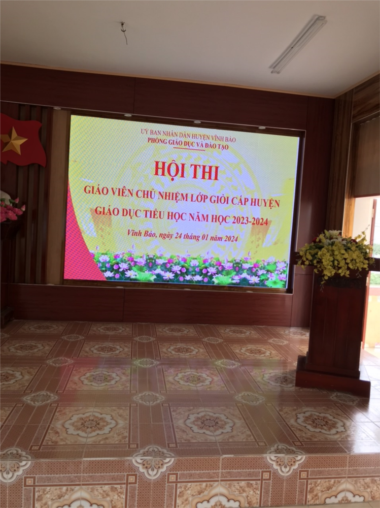 Hôm nay (ngày 24/1/2024), Trường Tiểu học Hiệp Hòa đã tích cực tham gia Hội Thi: “Giáo viên chủ nhiệm giỏi cấp huyện” do Phòng Giáo dục và Đào tạo huyện Vĩnh Bảo tổ chức, phần thi Báo cáo biện pháp. Toàn trường có 5 giáo viên đăng ký hội thi, là các thầy cô giáo có đủ phẩm chất đạo đức tốt, năng lực chuyên môn giỏi, đáp ứng tiêu chuẩn của người được dự thi.