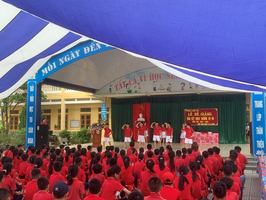 Buổi lễ diễn ra trong không khí nô nức của mùa hè với sự tham dự của đại diện lãnh đạo Đảng ủy, UBND xã Hiệp Hòa, ban đại diện cha mẹ học sinh, các thầy cô giáo trong Hội đồng sư phạm nhà trường và 463 em học sinh trong toàn trường.